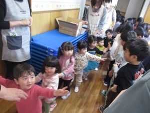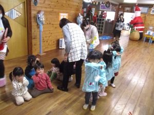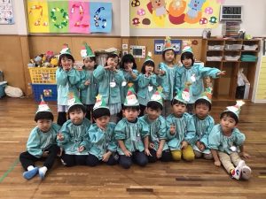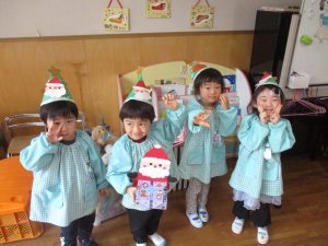 朝から「今日はクリスマス会だよね!」とニコニコしながら登園してくる子もいた位、楽しみにしていた様です★