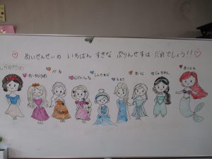 プレゼント探しを待っている間には各クラスの先生に関するクイズが書かれているので、その答えを相談しあっていきました。