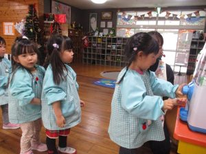 そして今日はクリスマス会の後に火災を想定した避難訓練を行ないました。