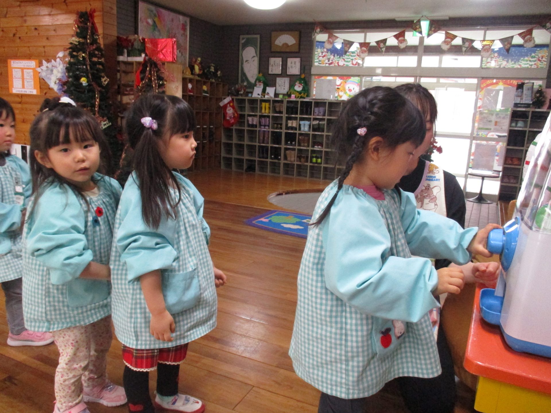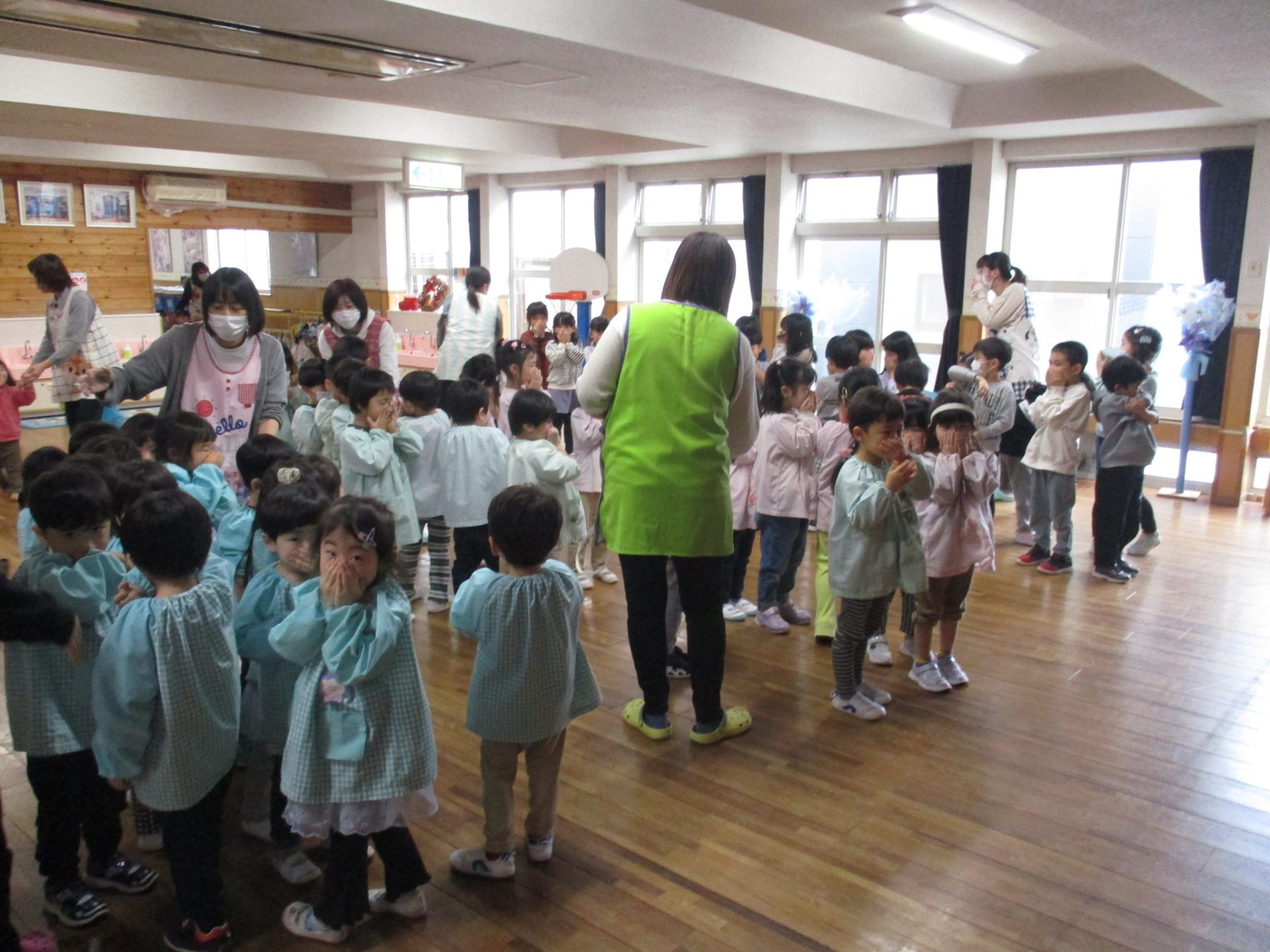 朝から「今日はクリスマス会だよね!」とニコニコしながら登園してくる子もいた位、楽しみにしていた様です★