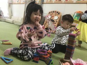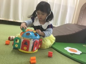 ふたば組さんは大掃除はまだ少し難しいかな?という事で、キッズクラブのお部屋でおもちゃを使って遊んでいました!