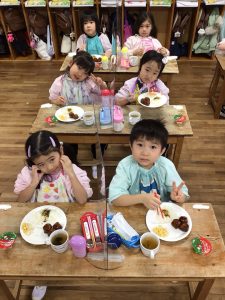 それぞれのクラスでの様子と明日は午前保育で給食を食べずに帰る子もいるかな?という事で、お給食写真も載せておきたいと思います!