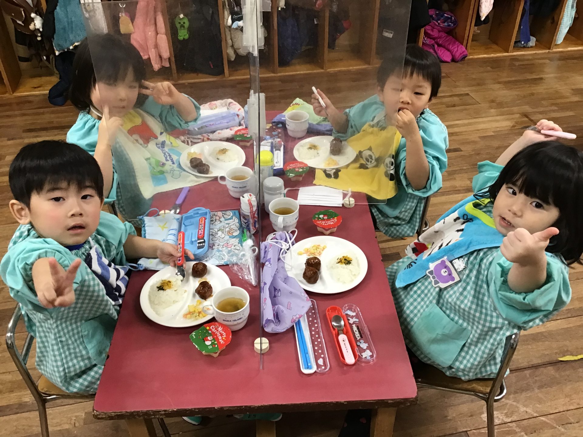 それぞれのクラスでの様子と明日は午前保育で給食を食べずに帰る子もいるかな?という事で、お給食写真も載せておきたいと思います!