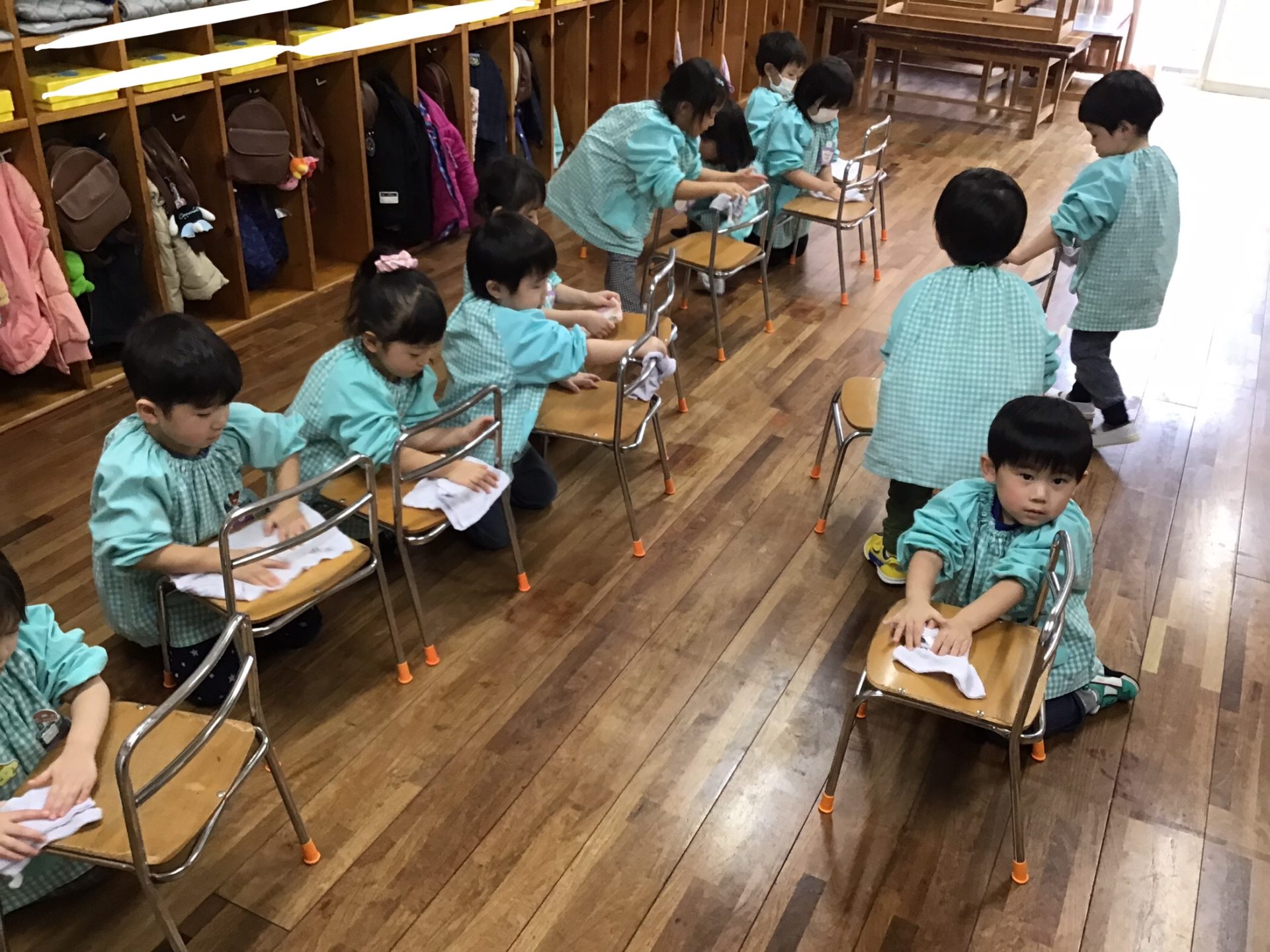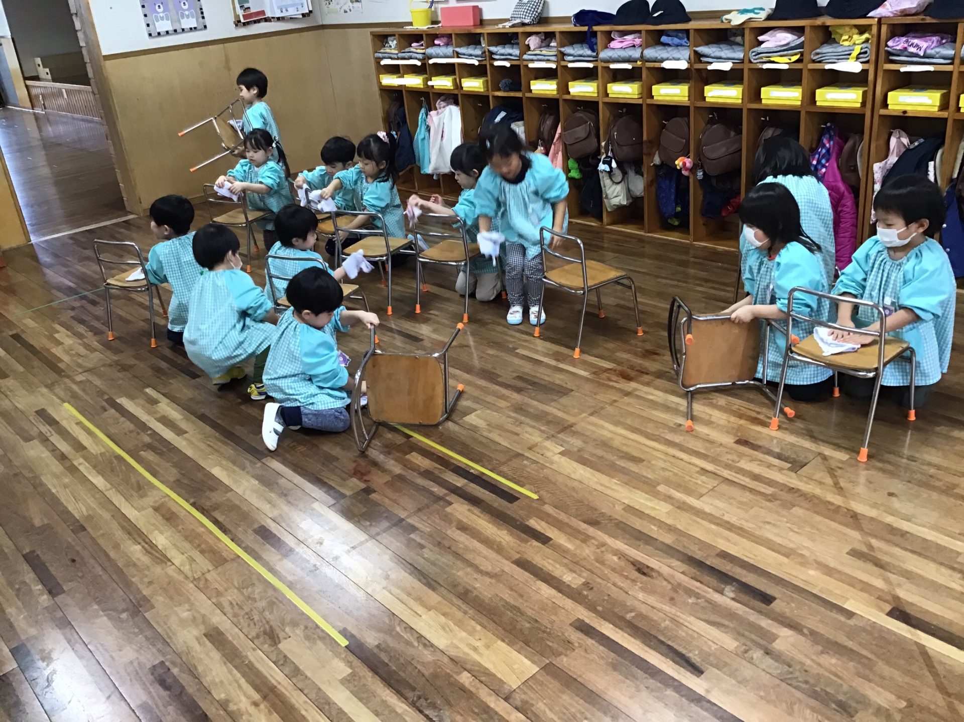 もうすぐの冬休みに向けて、2学期中に過ごしたお部屋やイス・机・おもちゃなどをみんなで綺麗にしていきました!