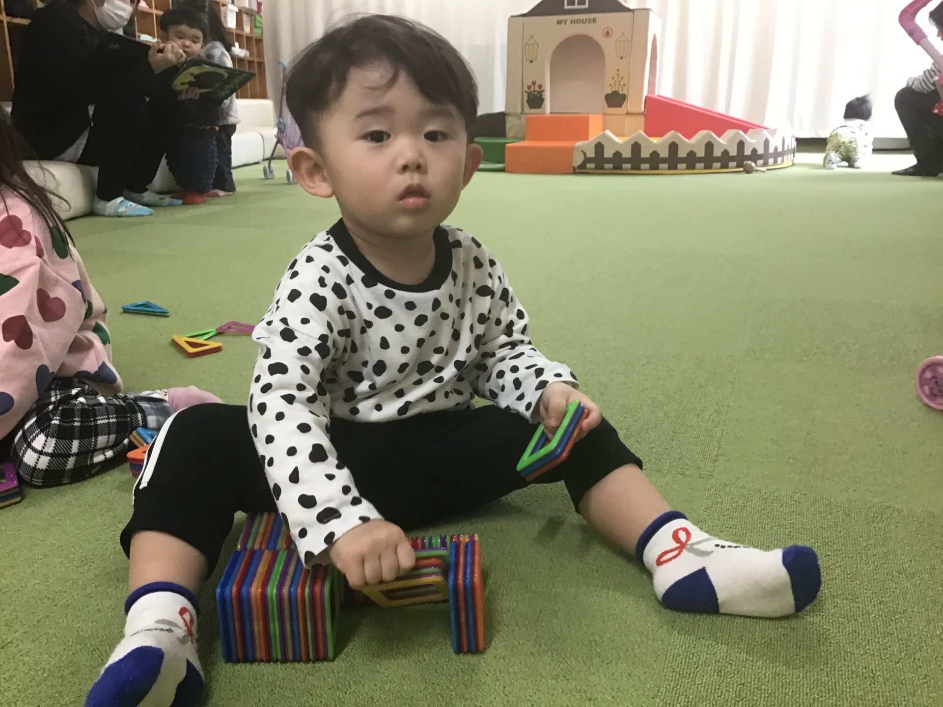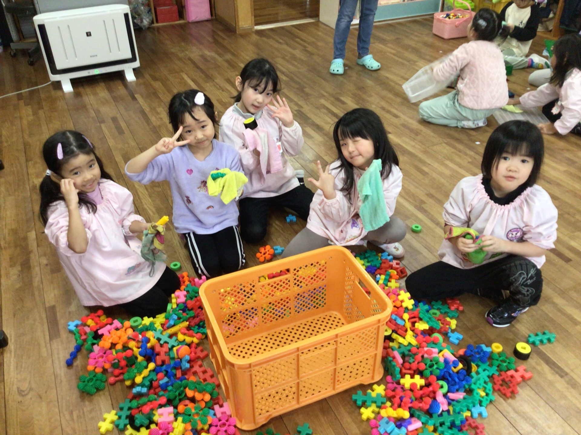 ふたば組さんは大掃除はまだ少し難しいかな?という事で、キッズクラブのお部屋でおもちゃを使って遊んでいました!