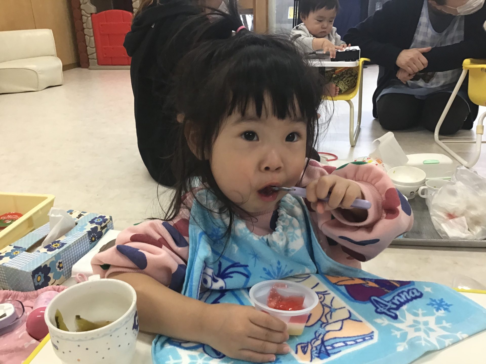 デザートにクリスマスゼリーが今日は出て、子どもたちは大喜びで食べていましたよ♩