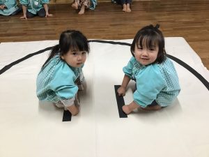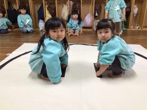最初は力の加減や押し方が分からず優しく手を握りあっていた子もルールを理解すると、だんだん良い勝負に!!