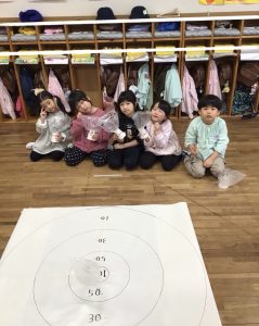 上手に的の中に入ると「やった〜!」と大喜び♩