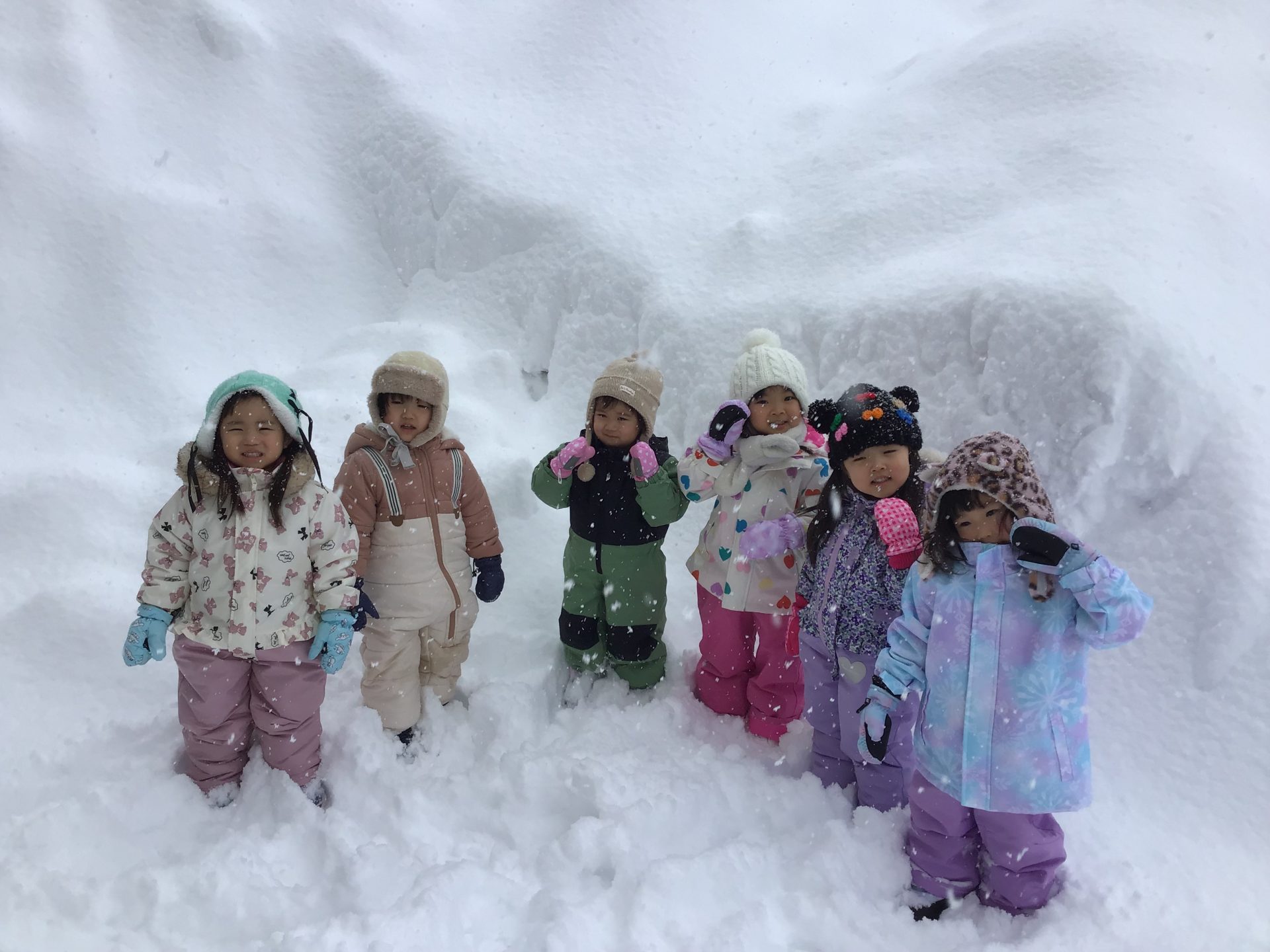 雪が断続的に降り続いていたので「大丈夫かな・・?」と思っていたのですが、子どもたちは「外に行きたい!」「雪遊びしたい!」と遊ぶ気まんまんで・・それなら短い時間でも!と外で遊ぶ事にしました♩