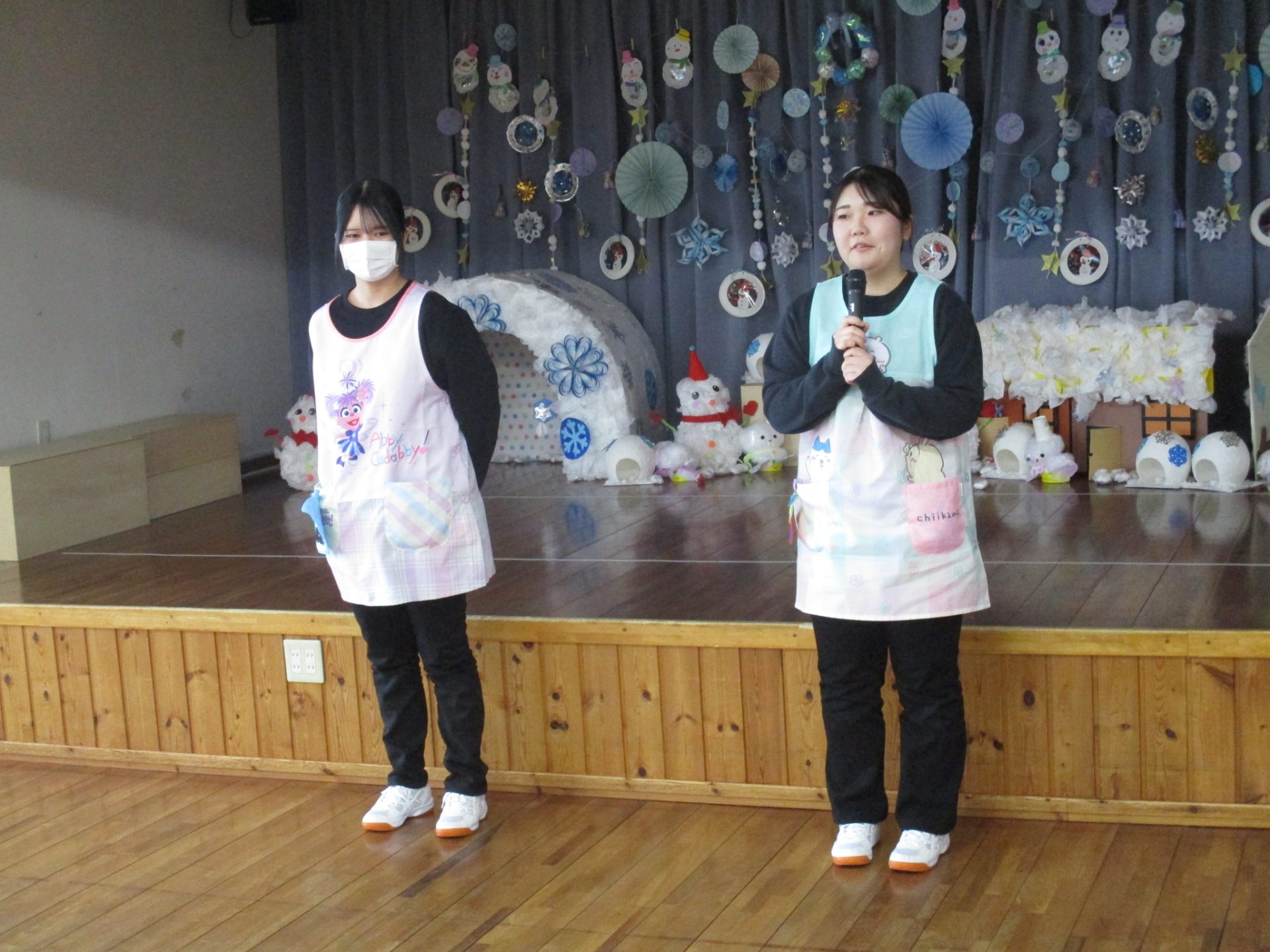 今日で実習生が実習最終日となったので、今日は全クラスホールでお集まりをしました!