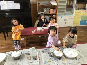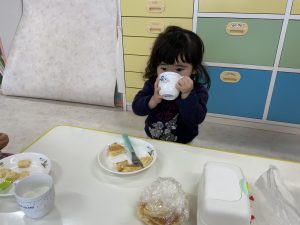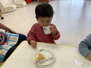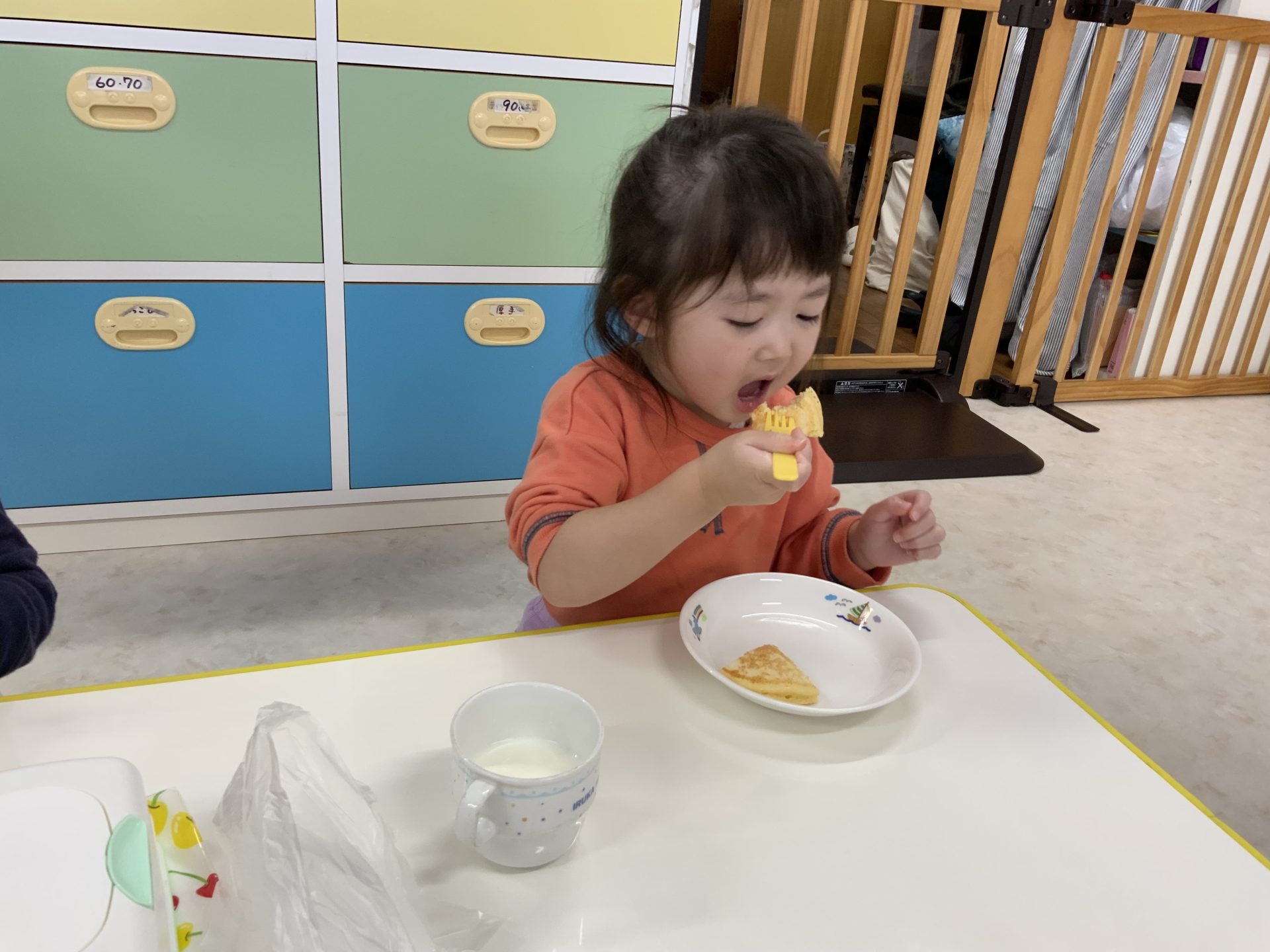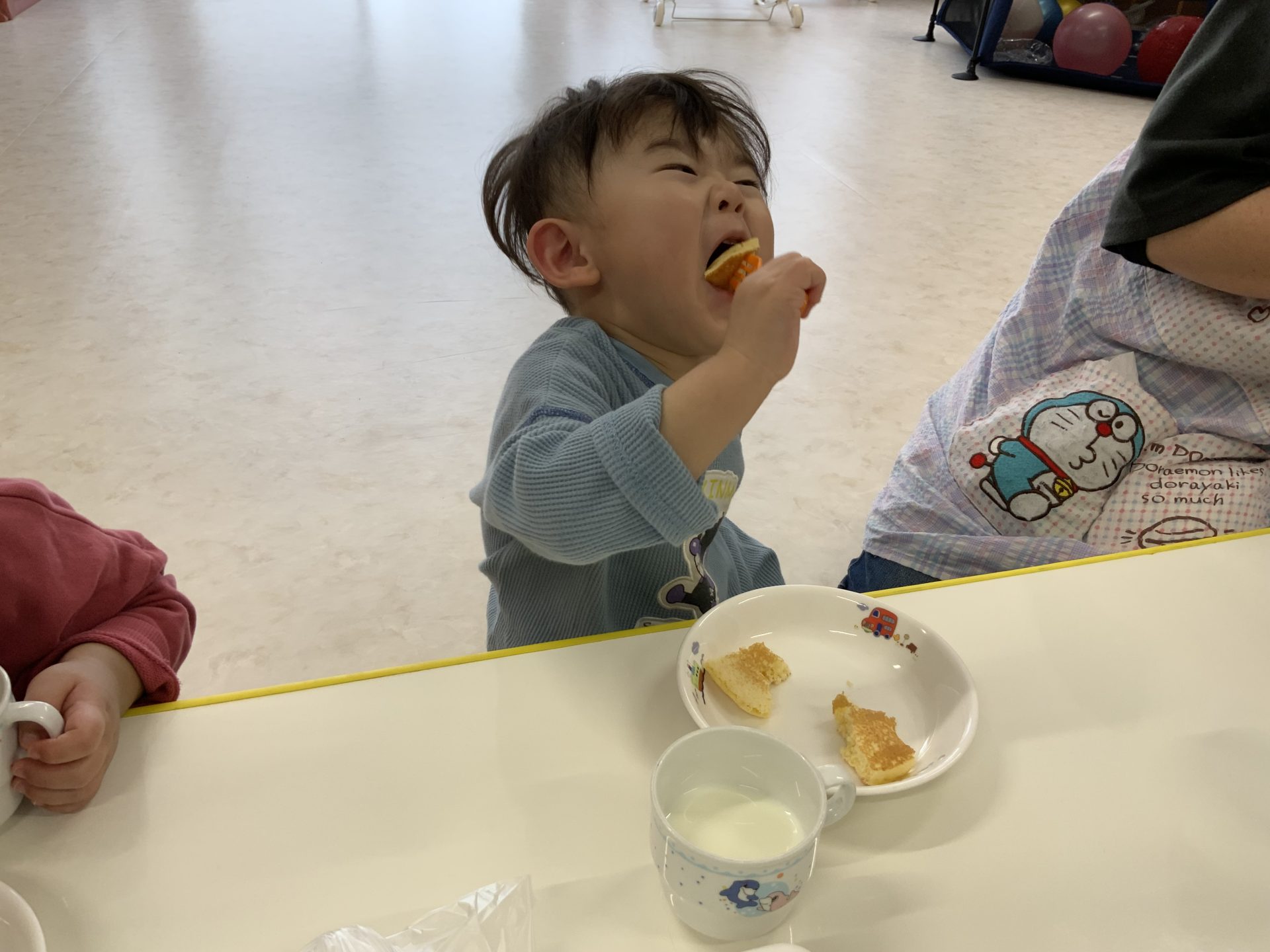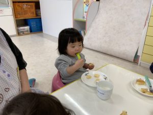 ふたば組さんはお給食写真が間に合わなかったので、おやつの時の写真を載せておきますね★