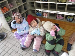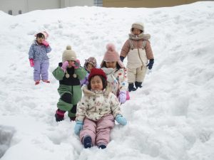 今日は天気が良かったので園庭で雪遊びを楽しんでいました。