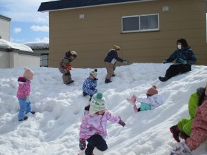 雪山からお尻で滑ってきたり、お友だちと穴を掘ってみたり・・様々な遊びを楽しんでいました🎵