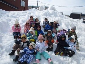 今日はきく組さんが園庭で雪遊びを楽しんでいました。