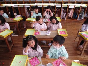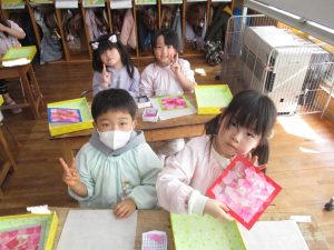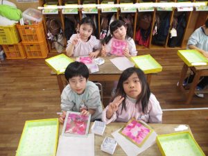 色のバランスなどを考えながら楽しそうに取り組んでいて、とても華やかな仕上がりになっていました★
