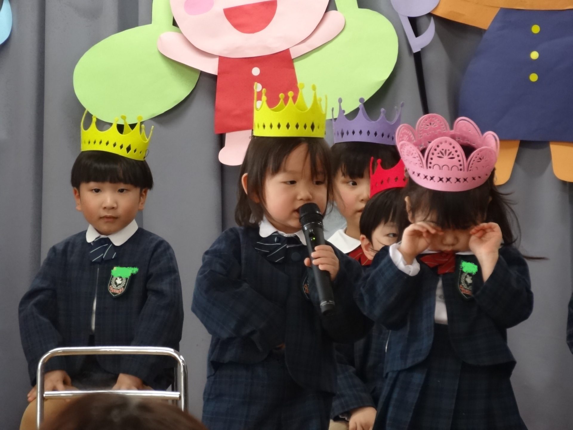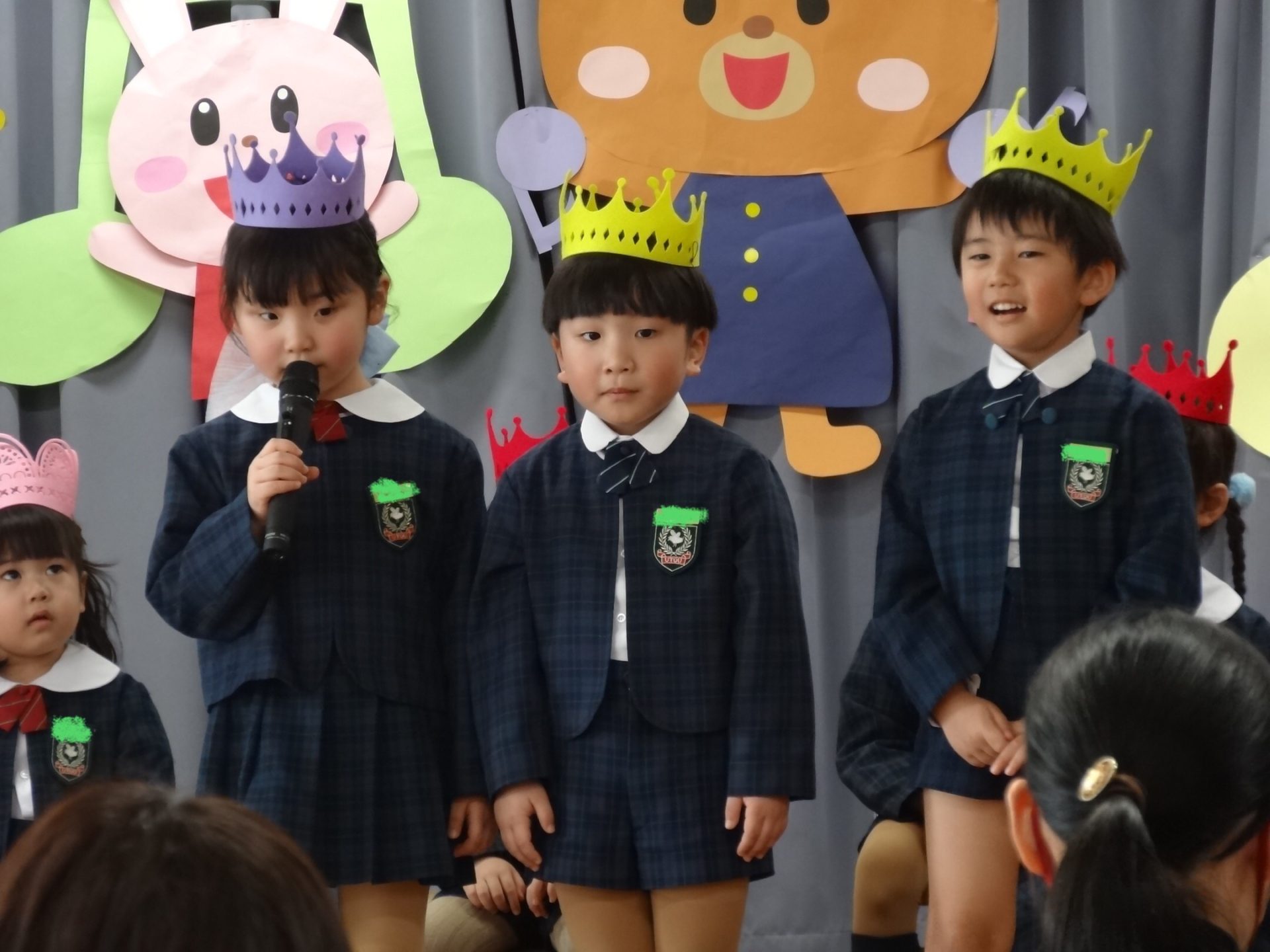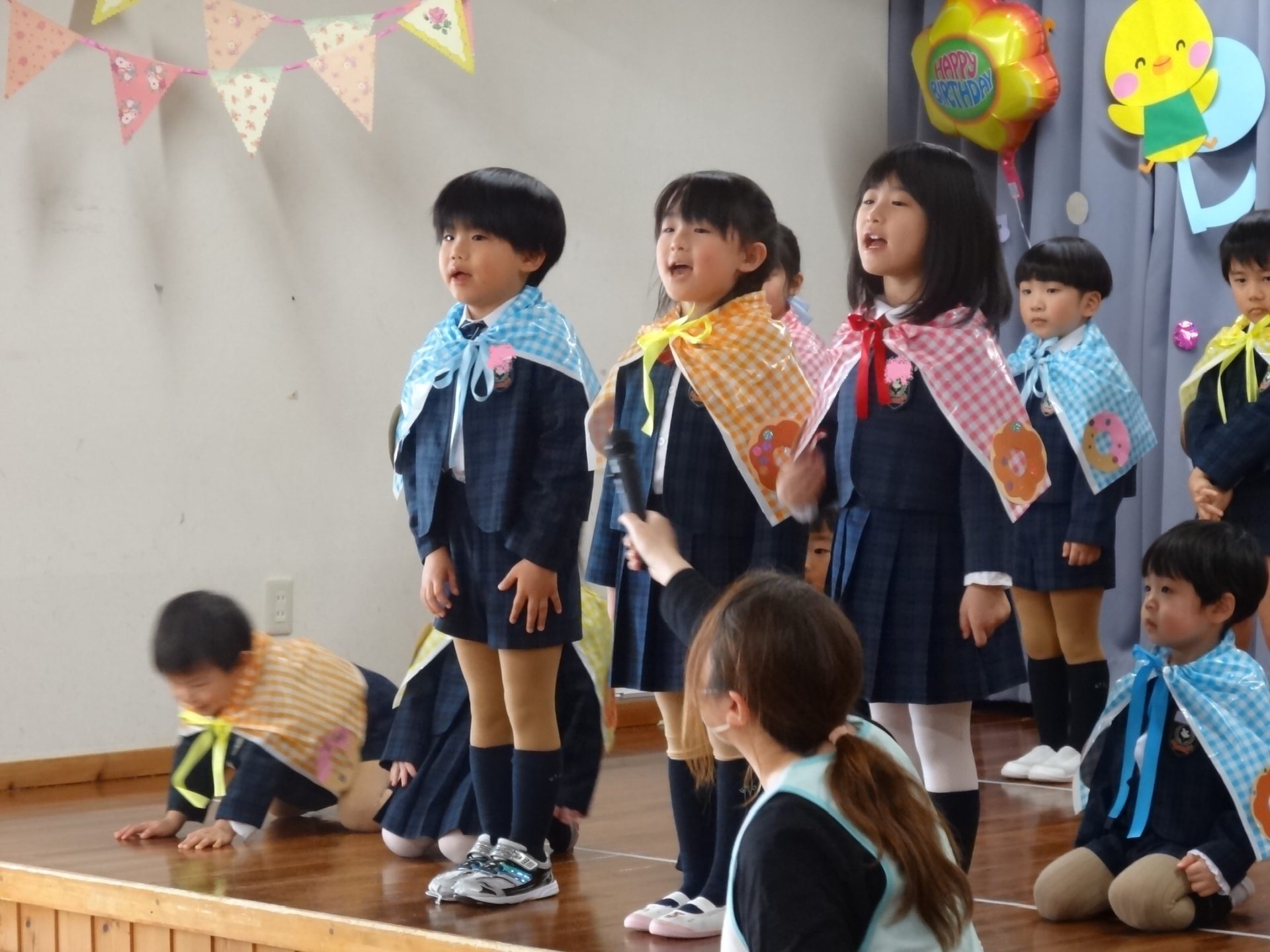 まずは元気に朝の歌を歌い、年長組さんの挨拶でいよいよお誕生会スタート!!