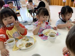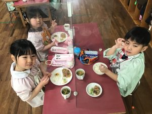 写真は今度のお楽しみ!という事で、今日はお給食の様子写真を載せておきます。