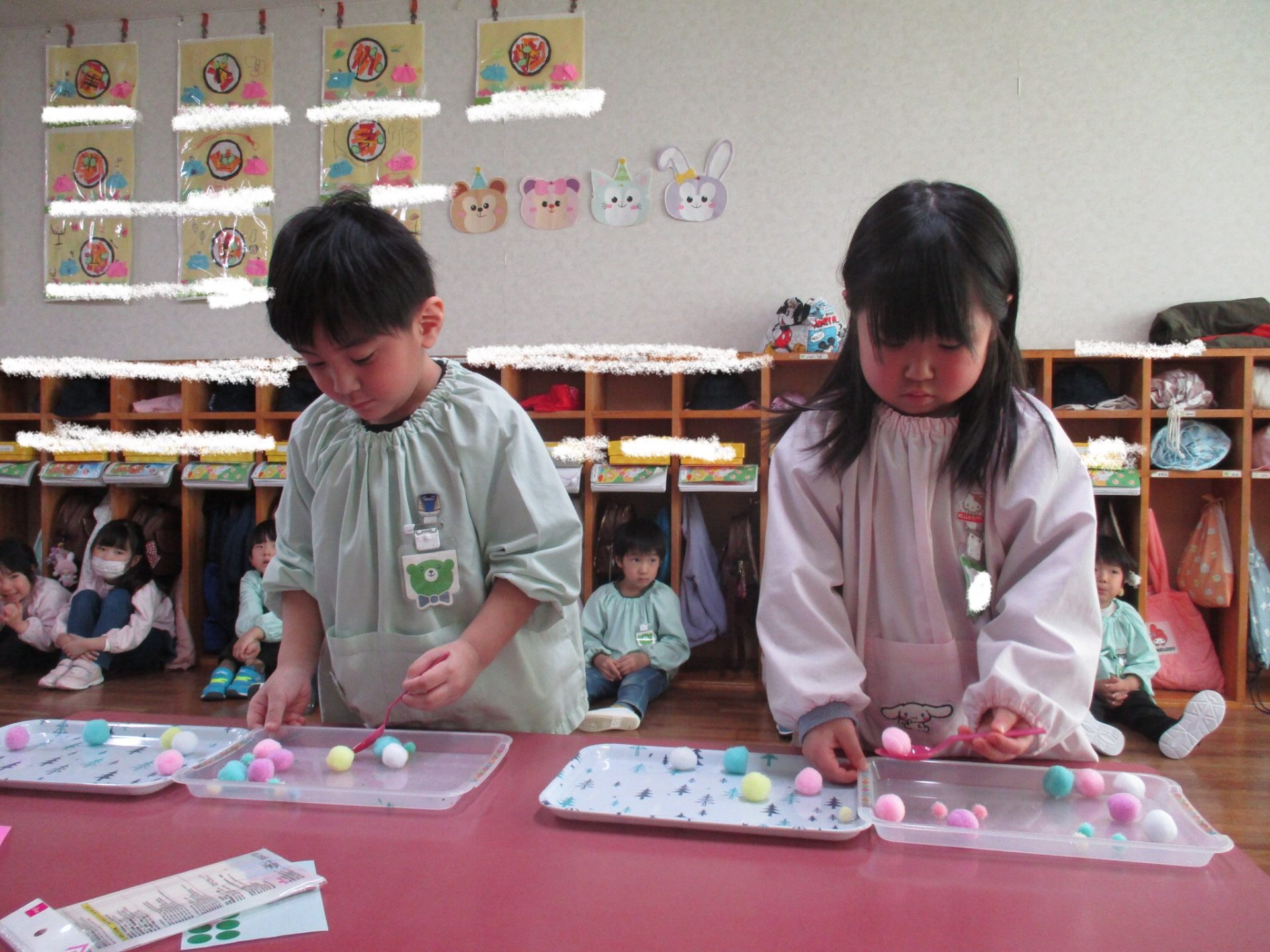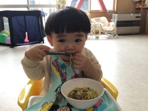 年長組になったら箸で給食を食べる練習をしていきたいと思っているので、春休みの間にお家でも練習をしてみて下さいね🎵