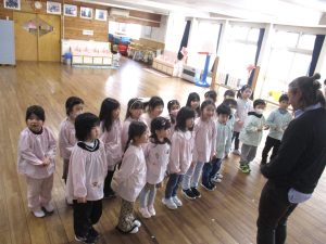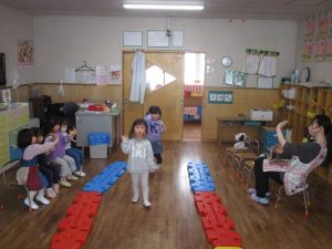 以前、保育室内でもした事がある様ですがホールの広い空間でやるのは初めて!という事で、みんな大喜び♩