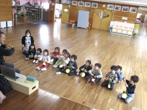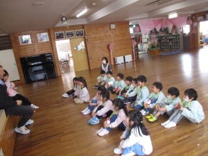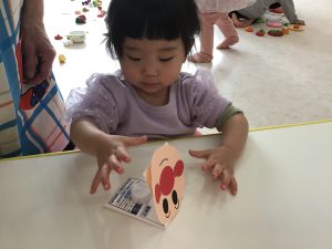 歌ったり真似をして話してみたり・・・元気に参加する姿が見られていました。