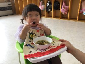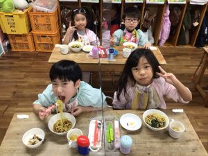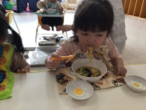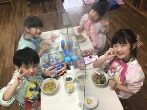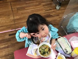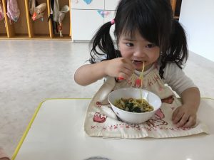 箸はまだトレーニング箸を使っている子もいる様ですが、今日は普通の箸でチャレンジ!