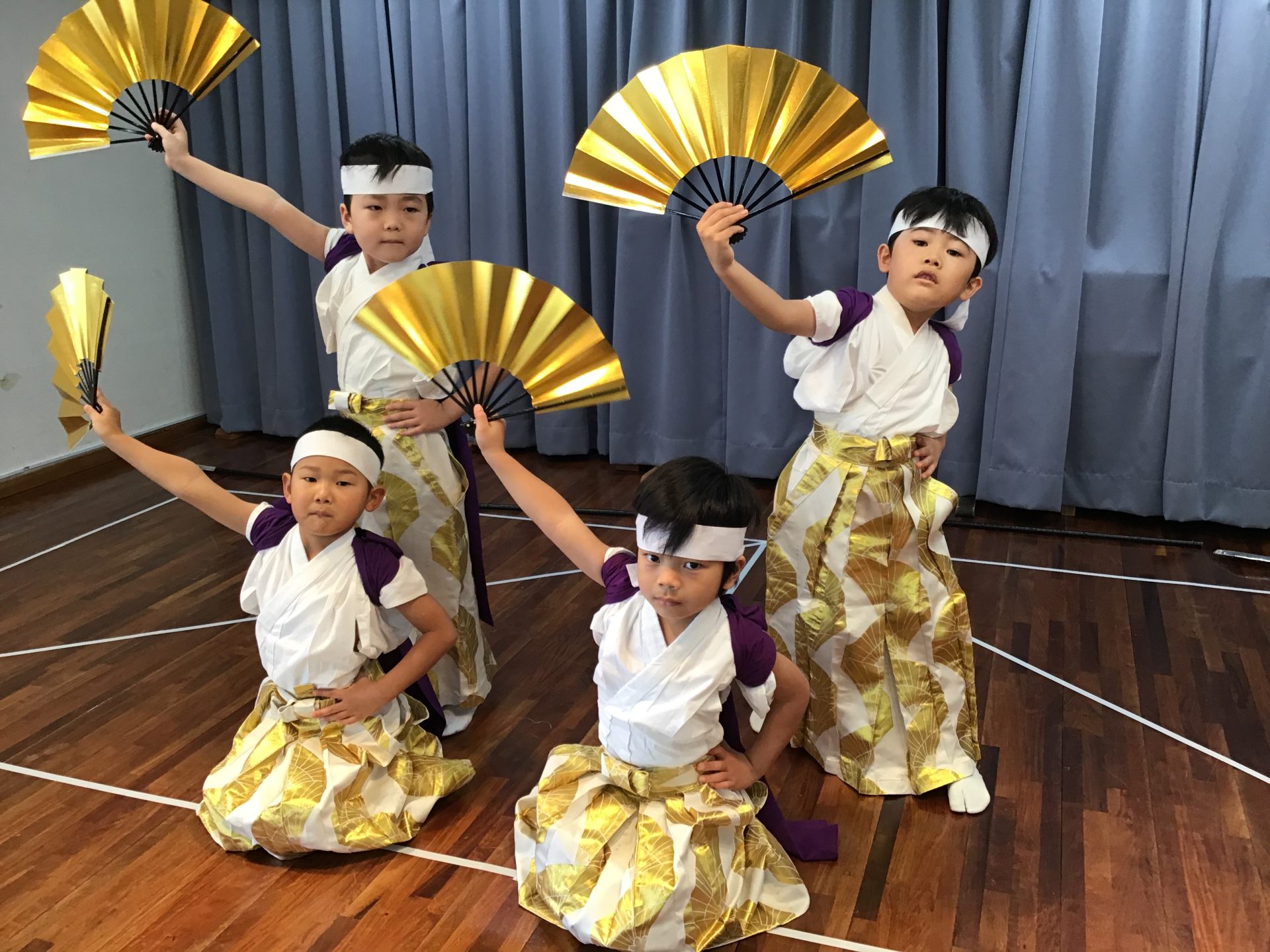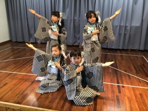 毎年お遊戯会のトリを飾ってくれるこの曲。男の子たちの凛々しい袴姿がカッコ良かったです!練習当初は恥ずかしがっていた「ヤッ!」という掛け声も徐々に大きな声で出来る様になりました♪