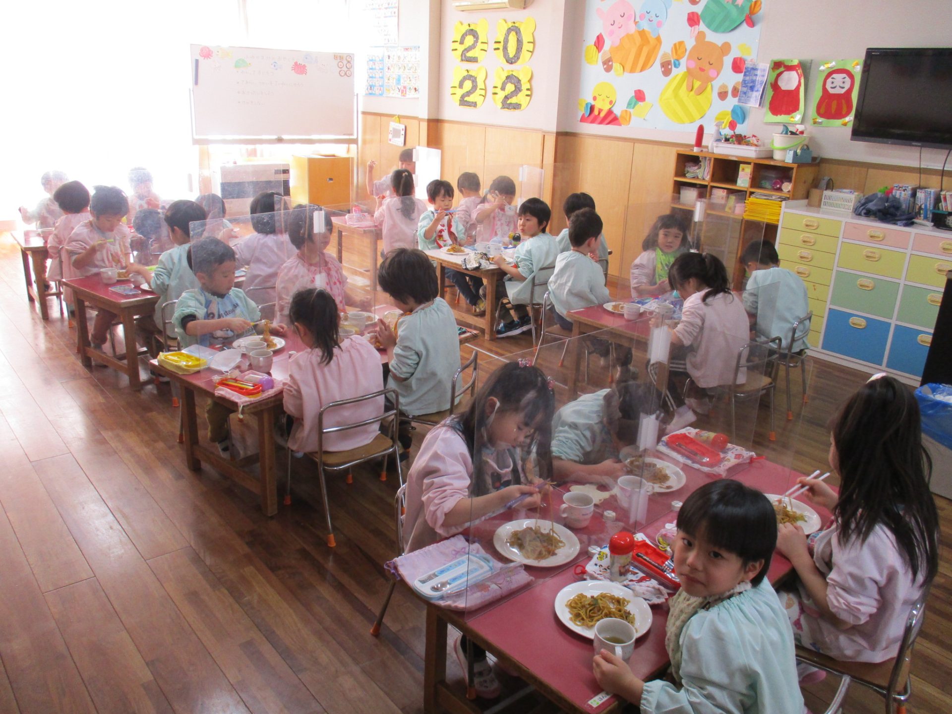 今日は週末という事でお給食の様子も載せておきます☆今日のメニューは焼きそばでした!写真を撮りにお邪魔するたびに「美味しいよ!」「焼きそば大好き!」という声が沢山聞こえていましたよ♪