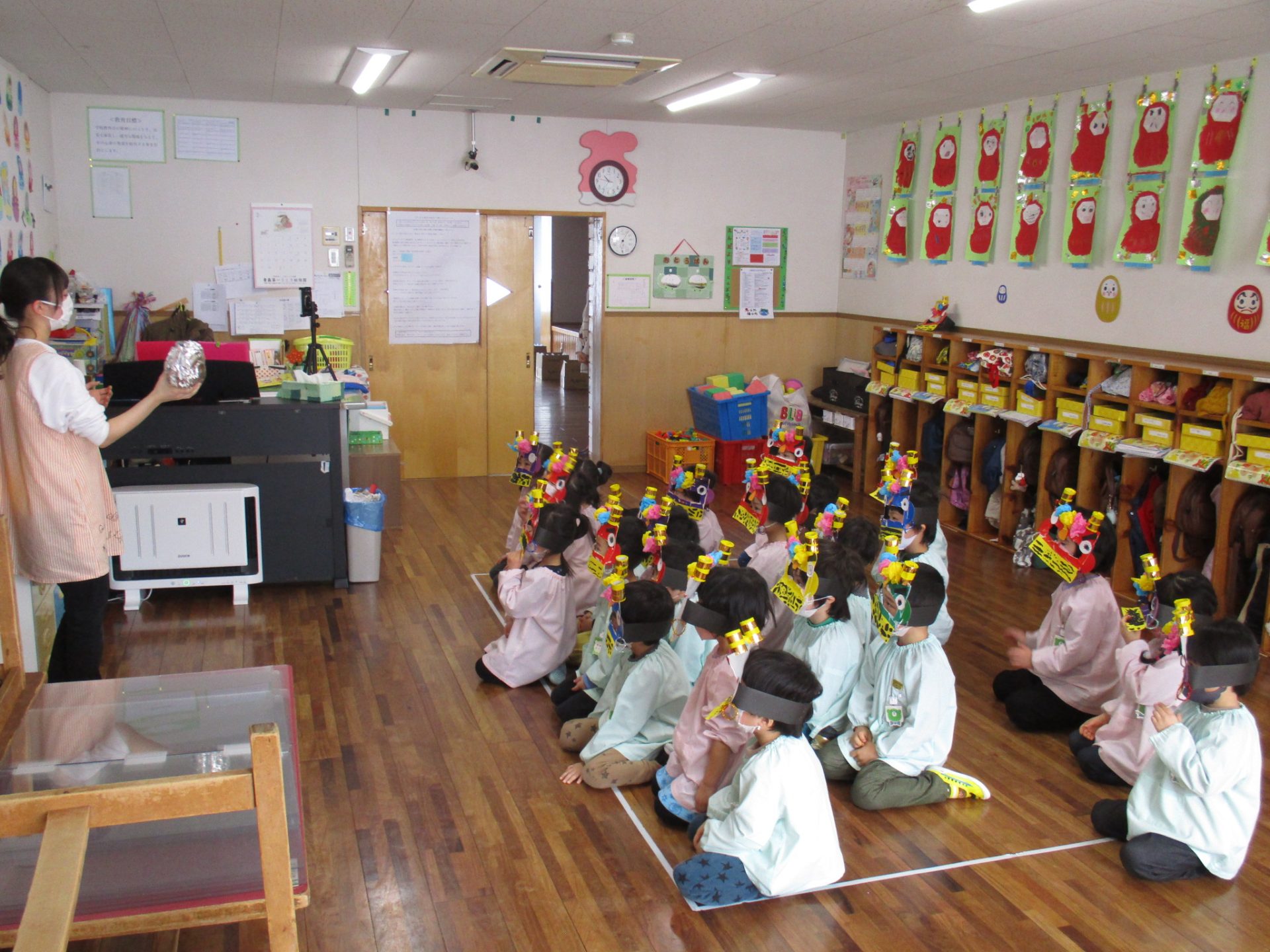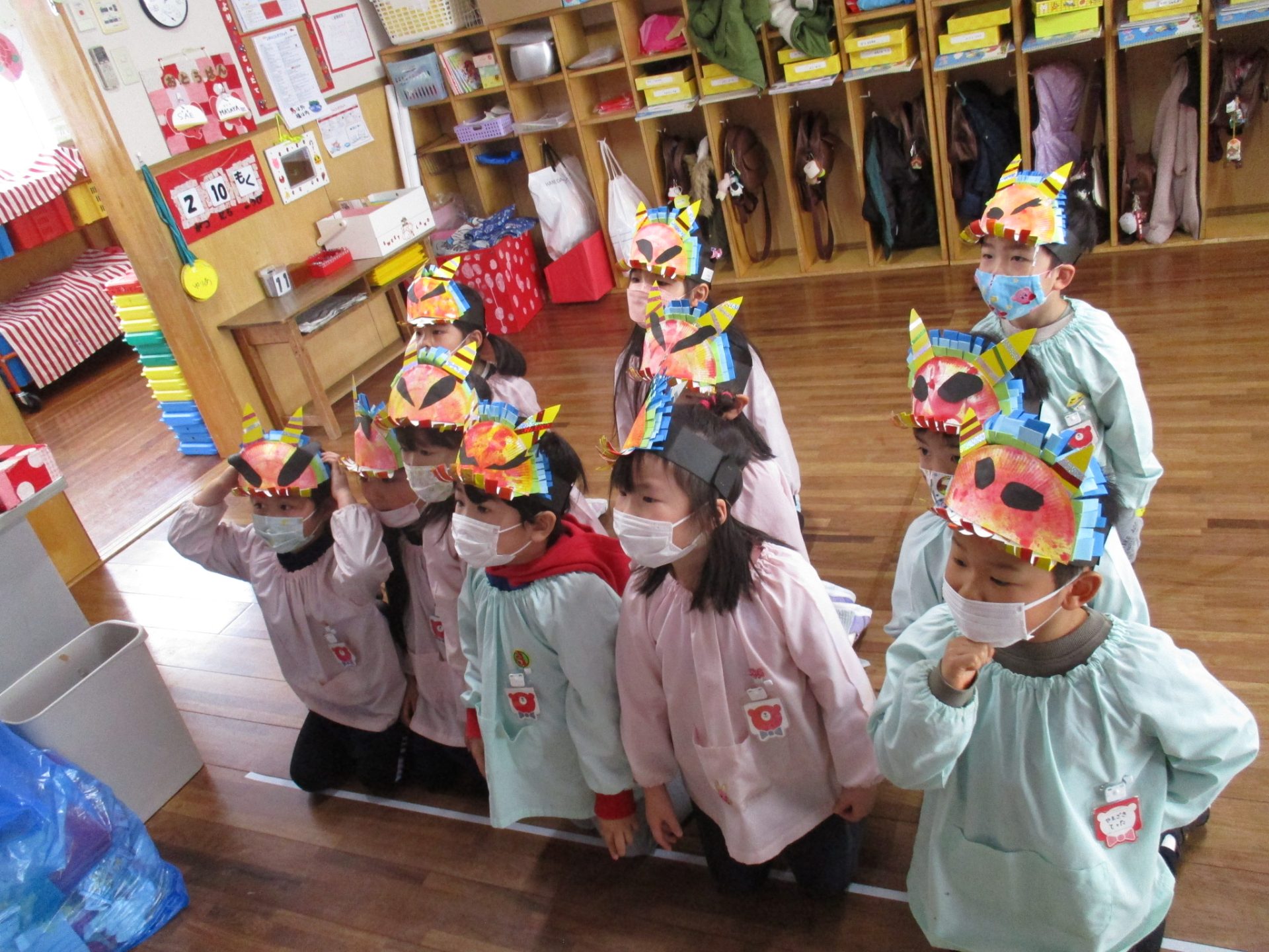 鬼のお面も持って帰ります。節分は過ぎてしまったのですが、子どもたちが一生懸命に取り組んだ作品ですので沢山、褒めてあげて下さいね♪