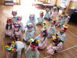 朝の登園時には、今日の豆まき会で鬼が来る事をもう知っている為か、泣きそうな表情で登園してきた子もいたのですが、みんな頑張っていましたよ!