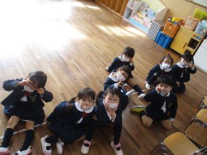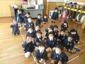 今日は全園児そろって制服を着用してもらい、1・2・3がつ生まれのお誕生会と今年度の卒園・進級記念撮影を行ないました。