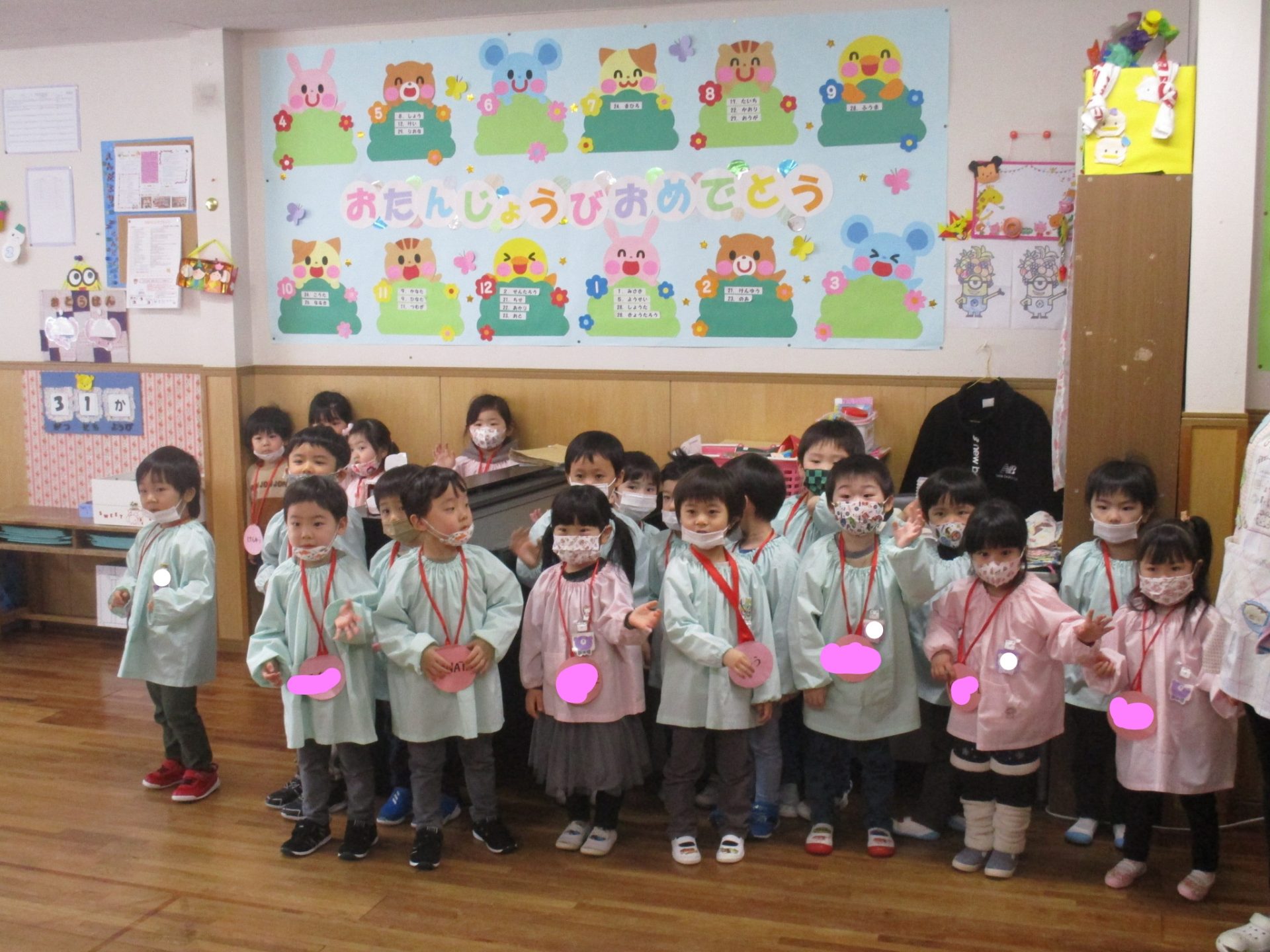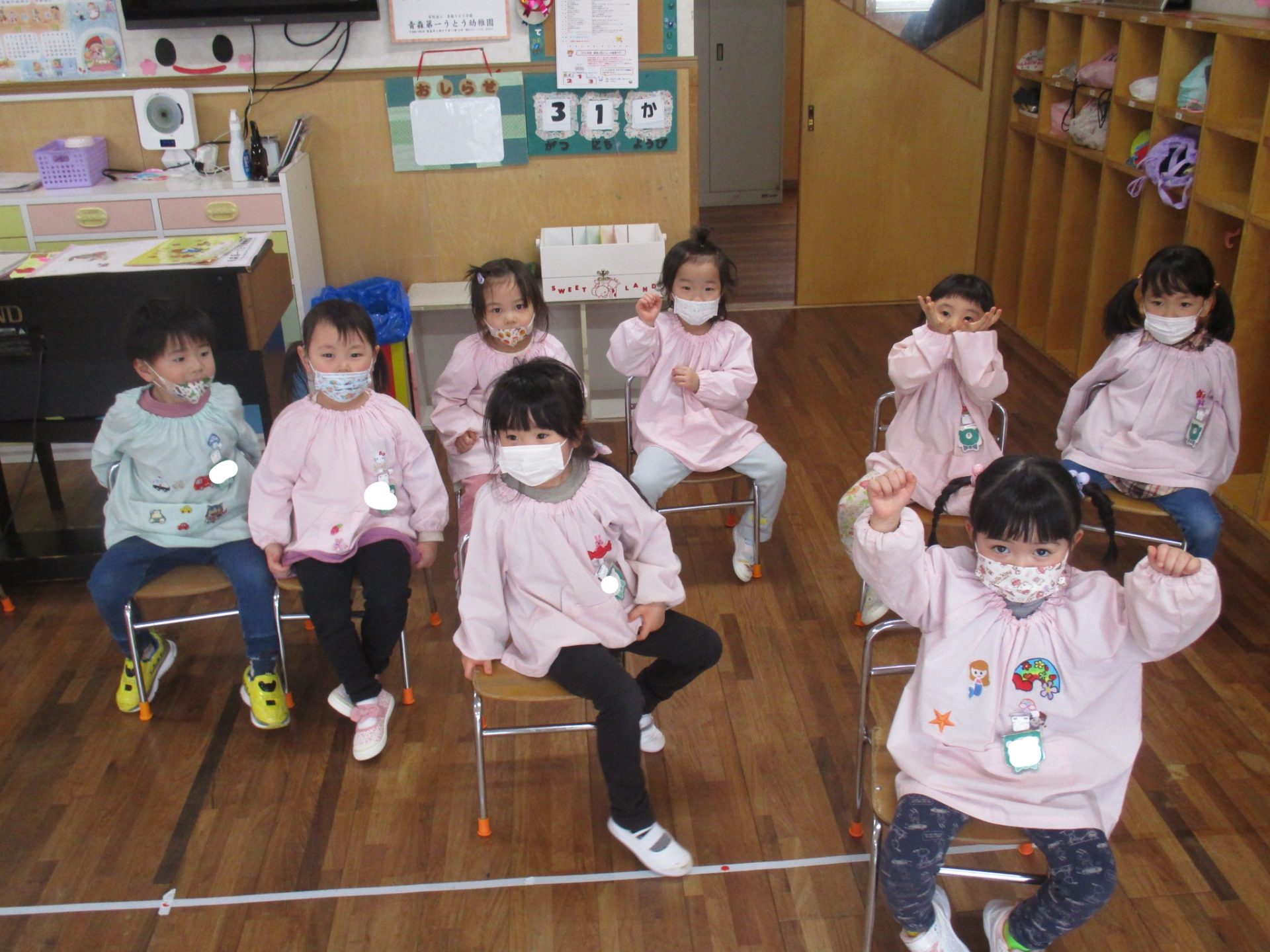 つぼみ組さんはイス取りゲームを行なった様です。「1番になったよ~!」とニコニコで教えてくれました。「またやりたな~!!」という声が聞こえてきた位、楽しむ事ができた様ですよ♪