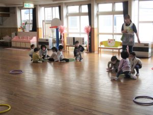 ばら組さんはホールで運動遊びを行なっていました。フラフープを使ってのゲームやリレーごっこなど、体を沢山動かして楽しんでいましたよ!久しぶりに思いっきり体を動かせて気持ちよさそうな表情でした♪