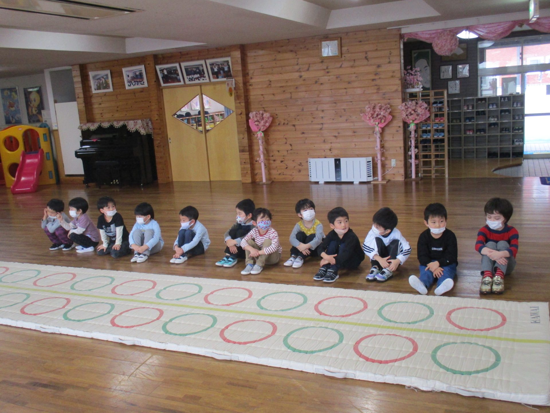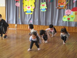 年中組さんは様々な動物さんに変身をして、歩いたり、ジャンプをしたり。。。と体を動かしていました。なかなかうまく出来ずにいる子を「頑張れ〜!!」と励ましたり、「楽しい!」「またやりたい!!」という声が沢山聞こえていた位でしたよ♪
