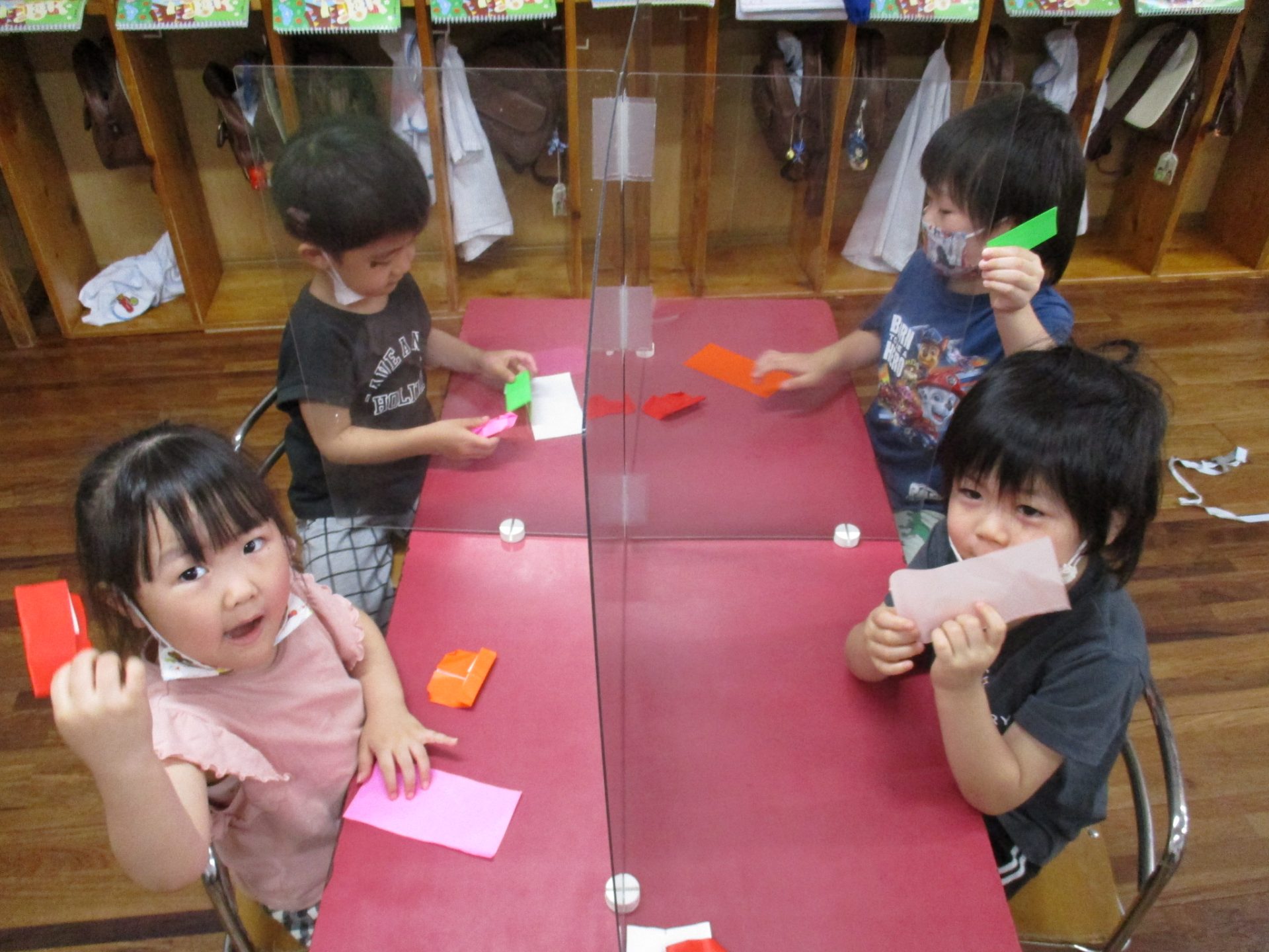 ハサミで切っていくパーツが多かったのですが、みんな集中しながら取り組んでいました!さすが年長組さんですね!