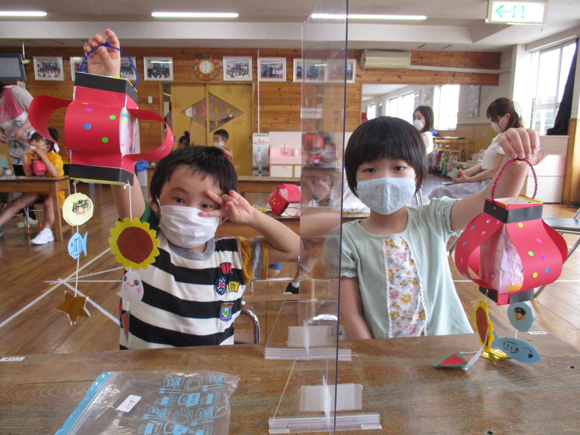 緊張が少しほぐれた所で、いよいよ活動スタート!今回のばら組さん参観日では『牛乳パック提灯』を作っていましたよ☆